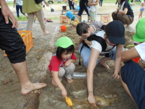 砂場でも楽しい遊びが始まりました。