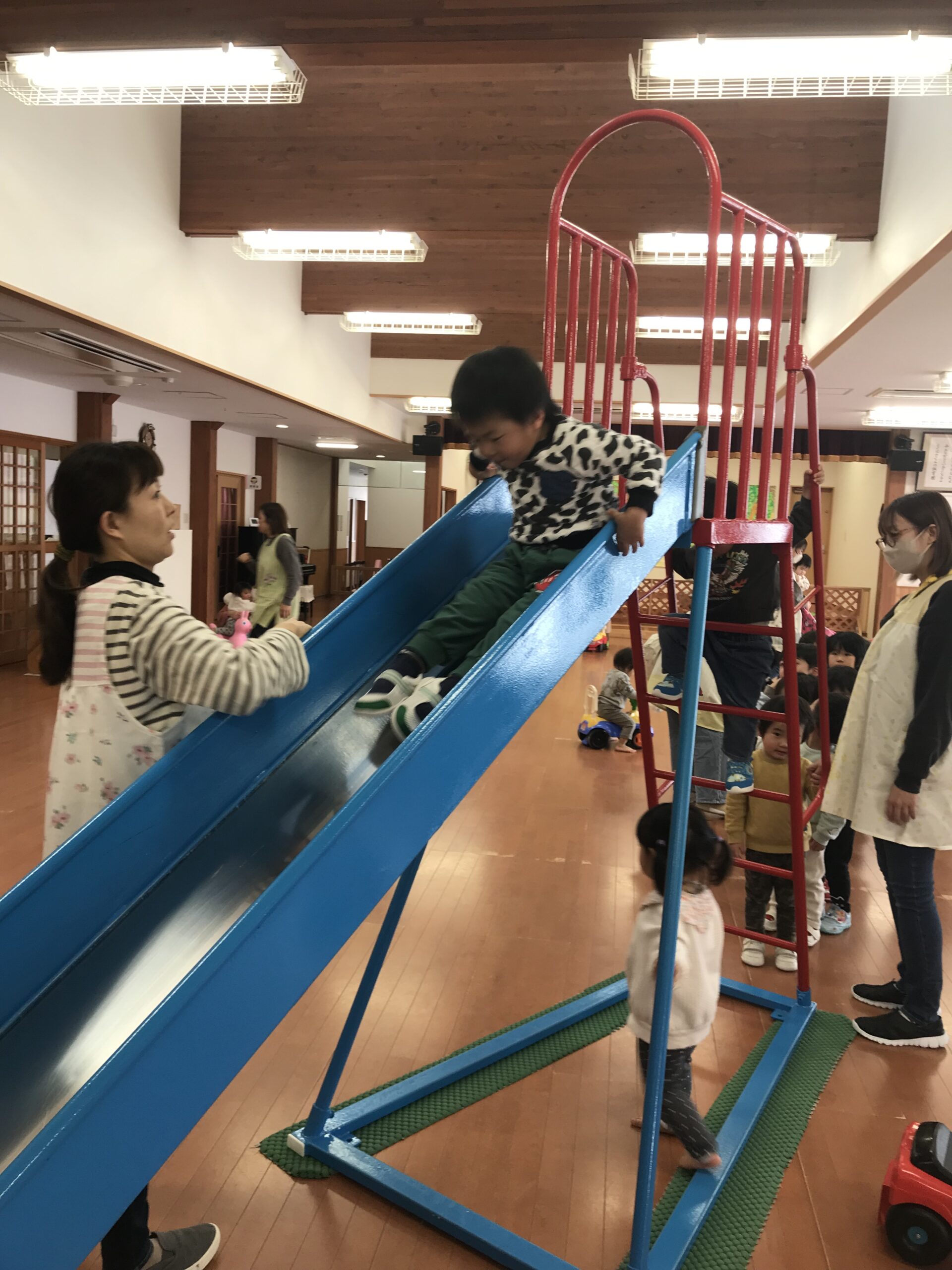 1月8日(水)、厳しい寒波の影響でなかなか外遊びが出来ない中、たんぽぽ組さん、さくら組さんは新しい遊具に初挑戦しました。